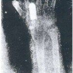 σημείωνε τὸν φόβο τῶν Ἑλλήνων στρατιωτῶν, νὰ ἐξετασθοῦν μὲ το νέο μηχάνημα, ἐπεσήμανε δὲ, ὅτι ἕκαναν τὸν σταυρό τους!!!!! πρὶν ἀλλὰ καὶ κατὰ τὴν διάρκεια τῆς ἐξετάσεως,ἡ ὁποία διαρκοῦσε ἕως καὶ 35!! min, ὁ ἴδιος δὲ ἐπεξηγοῦσε, ὅ,τι ἡ συμπεριφορά τους ὀφείλετο στὸν φόβο τους, μιᾶς καὶ θεωροῦσαν τὴν συσκευὴ «ἔργο τοῦ διαβόλου»!!!!!! Ἡ ἐμπειρία καταχωρήθηκε ὡς μία ἀπό τὶς πρῶτες χρήσεις ἀκτινολογικοῦ μηχανήματος ἐν καιρῷ πολέμου παγκοσμίως, περιγράφεται δὲ στὸ περιοδικὸ Lancet, καὶ συγκεκριμένα τὸ Ά μέρος στὸ τεῦχος τῆς 14ης Ἰανουαρίου 1899 (σελ. 81-83) καὶ τὸ Β΄ μέρος στὸ τεῦχος τῆς 21ης Ἰανουαρίου τοῦ ἰδίου ἔτους (σελ.152-156). Παραθέτω ἐδῶ 2 εἰκόνες ἀπὸ 2 ἀκτινογραφίες ποὺ ἐλήφθησαν τότε ἀπὸ τὸ βρεττανικὸ ὑγεινομικὸ κλιμάκιο σὲ ἕλληνες στρατιῶτες τραυματίες τοῦ πολέμου τοῦ 1897!! Ὁ πρῶτος ἔχει δεχθεῖ βλῆμα στὴν ἄκρα χεῖρα, ὁ δὲ δεύτερος εἶναι ἱππέας καὶ ἔχει ὑποστεῖ κάταγμα βραχιονίου δεχθεὶς ἕνα βλῆμα στὴν μεσότητα τῆς διαφύσεως τοῦ ὀστοῦ, ἕνα δεύτερο δὲ βλῆμα προβάλλεται στὴν περιοχὴ τῆς συστοίχου ὡμοπλάτης!!