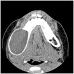 Πρόσφατα μᾶς ἐπισκέφθηκε ἀσθενὴς, γυναῖκα, ἠλικίας 46 ἐτῶν, παραπονούμενη ὅτι κατὰ τὴν διάρκεια τοῦ τελευταίου μηνὸς, ἄρχισε νὰ ἀντιλαμβάνεται ἀνώδυνο οἴδημα στὴν γωνία τῆς κάτω γνάθου, τὸ ὁποῖο ἔβαινε προοδευτικῶς ἐπιδεινούμενο, ἀπὸ ἑβδομάδος δὲ, ἐγκαταστάθηκε εὐαισθησία καὶ ἥπιο ἄλγος στὴν ἴδια περιοχὴ, γεγονὸς ποὺ τῆς ἐφαίνετο παράδοξο, δεδομένου ὅτι πρὸ ὀλίγων ἐτῶν εἶχε γίνει ἐξαγωγὴ τῶν γομφίων καὶ προγομφίων ΑΡ κάτω. Δὲν εἶχε ἐπισκεφθεῖ ὀδοντίατρο, προσῆλθε ὅμως στὸ ἐργαστήριο μὲ αἴτημα, νὰ διενεργηθεῖ πρῶτα πανοραμικὴ ἀκτινογραφία, προκειμένου σὲ δεύτερο χρόνο νὰ εἶναι ἕτοιμη πρὸς ἐπίσκεψη στὸν ὀδοντίατρό της.