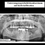 Μετὰ τὰ ἀνωτέρω ἐξηγήσαμε στὸν ἀσθενῆ τὴν σοβαρότητα τῶν ἀκτινολογικῶν εὑρημάτων καὶ τὴν ἀνάγκη νὰ ἐπισκεφθεῖ γναθοχειρουργὸ καὶ  ΩΡΛ διὰ τὴν ἄμεση ἐφαρμογὴ θεραπευτικῶν μέτρων. Μετὰ ἕνα μῆνα μᾶς ἐπισκέφθηκε ἡ σύζυγός του καὶ μᾶς ἀνακοίνωσε τὰ εὑρήματα τῆς βιοψίας: βλεννοεπιδερμοειδές καρκίνωμα τοῦ ὑπογλωσσίου σιελογόνου ἀδένος ΑΡ!! Διαπιστώθηκε προσβολὴ ἐπιχωρίων λεμφαδένων τῆς συστοίχου τραχηλικῆς χώρας. Ἔγινε ἐκτομὴ τοῦ ὑπογλωσσίου σιελογόνου ἀδένος, τμήματος τῆς γλώσσης, ἀφαίρεση τῶν διηθημένων λεμφαδένων, εὑρεία ἐκτομὴ τοῦ ΑΡ κλάδου τῆς κάτω γνάθου, τέλος δὲ ἀνασυγκρότηση αὐτῆς μὲ εἰδικὸ κεραμικὸ ὑλικό. Θὰ ἀκολουθήσει ἀκτινοθεραπεία καὶ ἐφαρμογὴ χημειοθεραπείας.